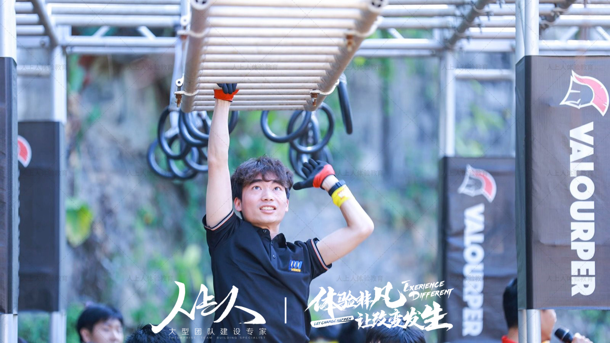 • 禁林密约:团队全体成员接力依次通过完成,利用四肢平衡协调攀爬通过软梯并成功到达 “对岸”
