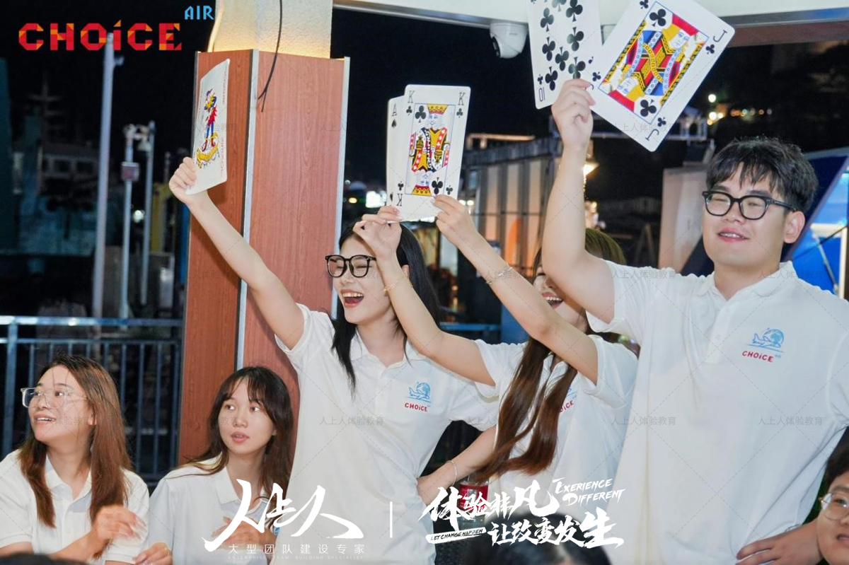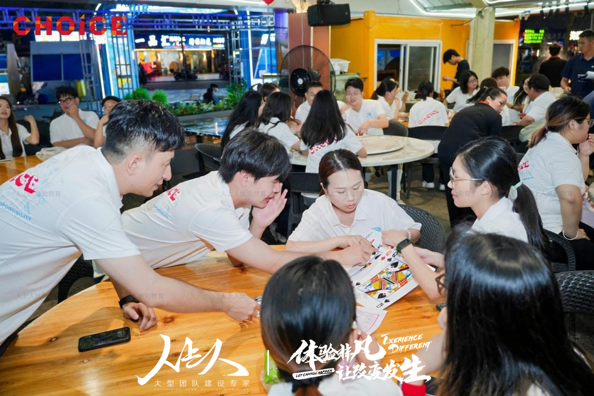 “巨人捕手” 项目结束后,全体员工搭乘游船前往桂山岛。抵达海岛并享用特色晚餐后,晚间的 “德州扑克” 项目如期开展。不同于传统娱乐模式,此次德州扑克以团队为单位进行,考验队员的策略思考与团队决策能力。各队伍在牌局中谨慎分析、相互商讨,在轻松的氛围中进一步提升了团队协作意识。