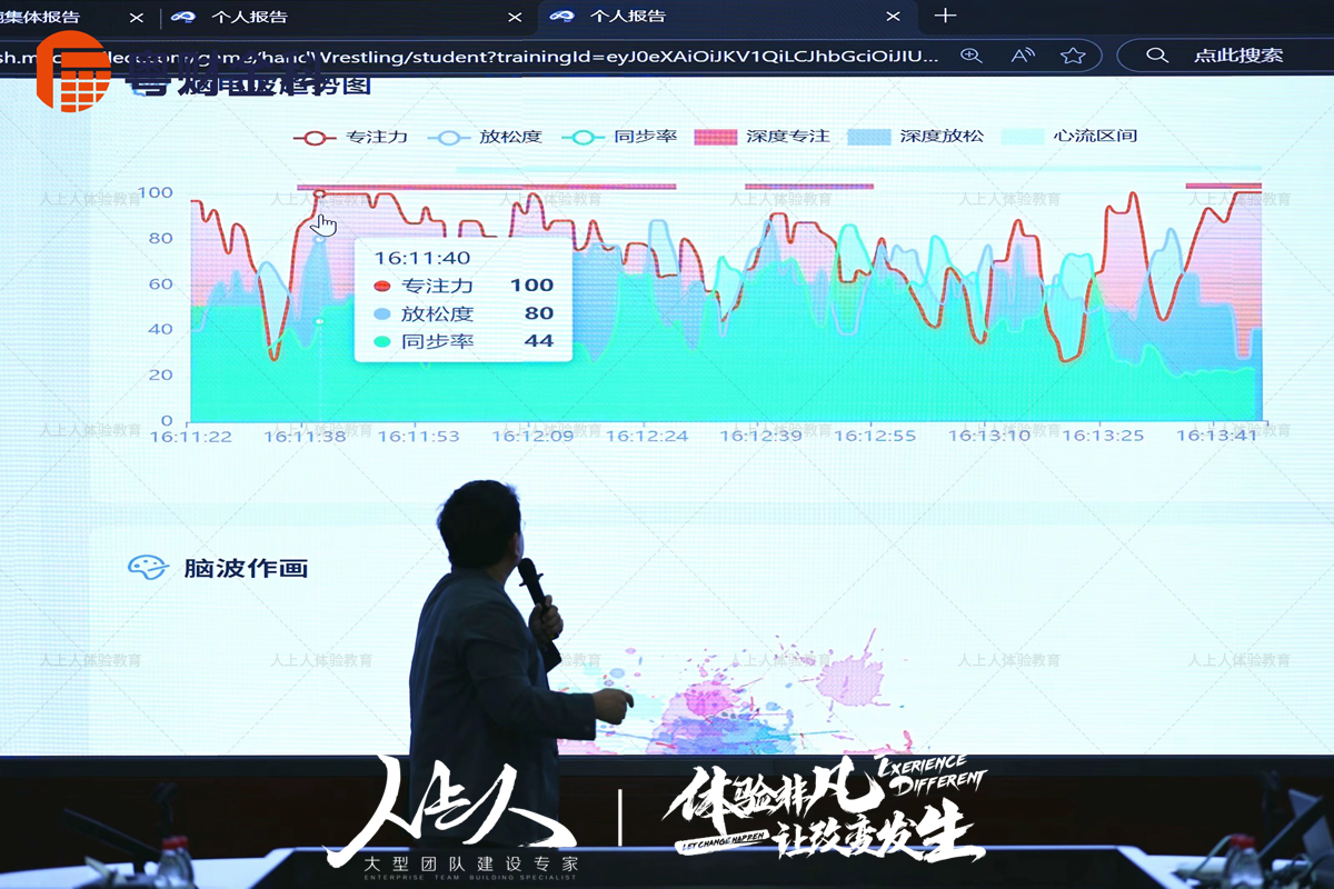 活动最后所有参与者再次佩戴意念头带,以 “创造与扩容” 为核心信念,通过同步脑波状态,共同创作 “坛城图腾”。导师结合活动全程的脑波数据报告,为每个团队提供个性化反馈,指出大家在专注力、放松度上的优势与提升方向。